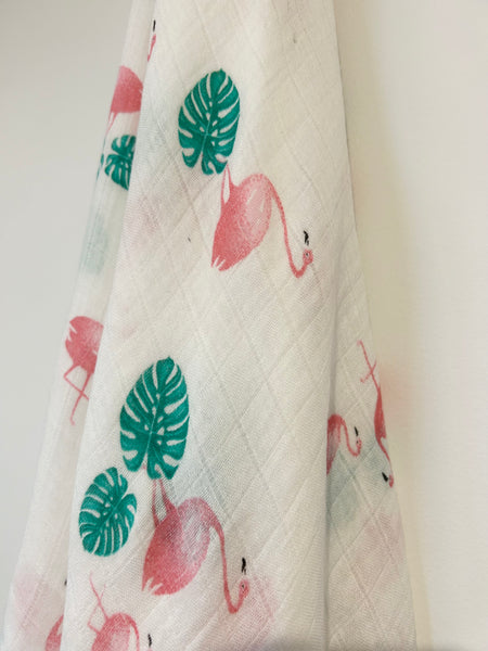 Flamingo print luxurious soft muslin baby wrap - Bamboo 70% Cotton 30%.